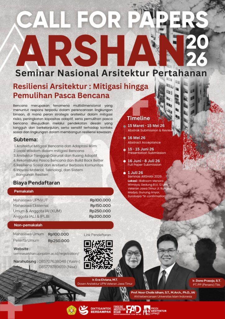 Tema Seminar Nasional Arsitektur Pertahanan (Arshan) 2026 ini adalah ”SEMINAR NASIONAL ARSITEKTUR PERTAHANAN 2025 “ARSITEKTUR ADAPTIF MEWUJUDKAN LINGKUNG BINA TANGGAP IKLIM”, yang mencakup sub tema sebagai berikut: